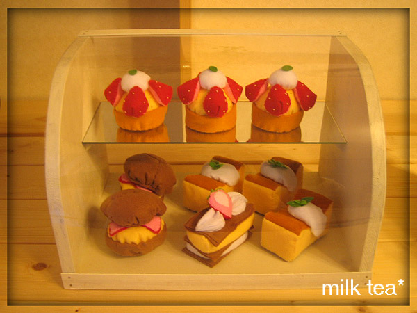 フェルトで、苺なケーキを作りました♪