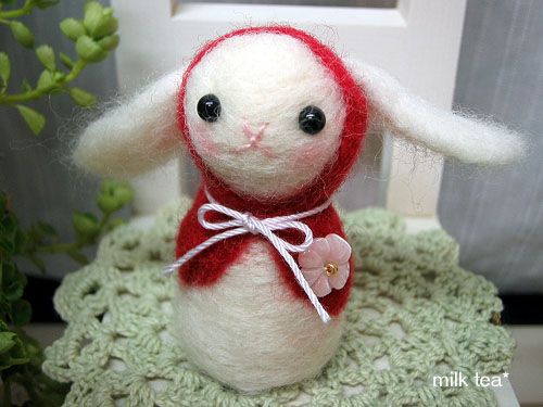 再びお家に帰ってきた羊毛のうさぎさんです♪