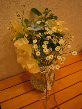 ↑300円ミニブーケ。束ねられたままグラスに。