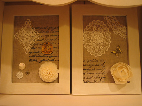 アンティークでもなんでもないフレームをペンキで荒く塗り塗りしてコラージュしてみました♪